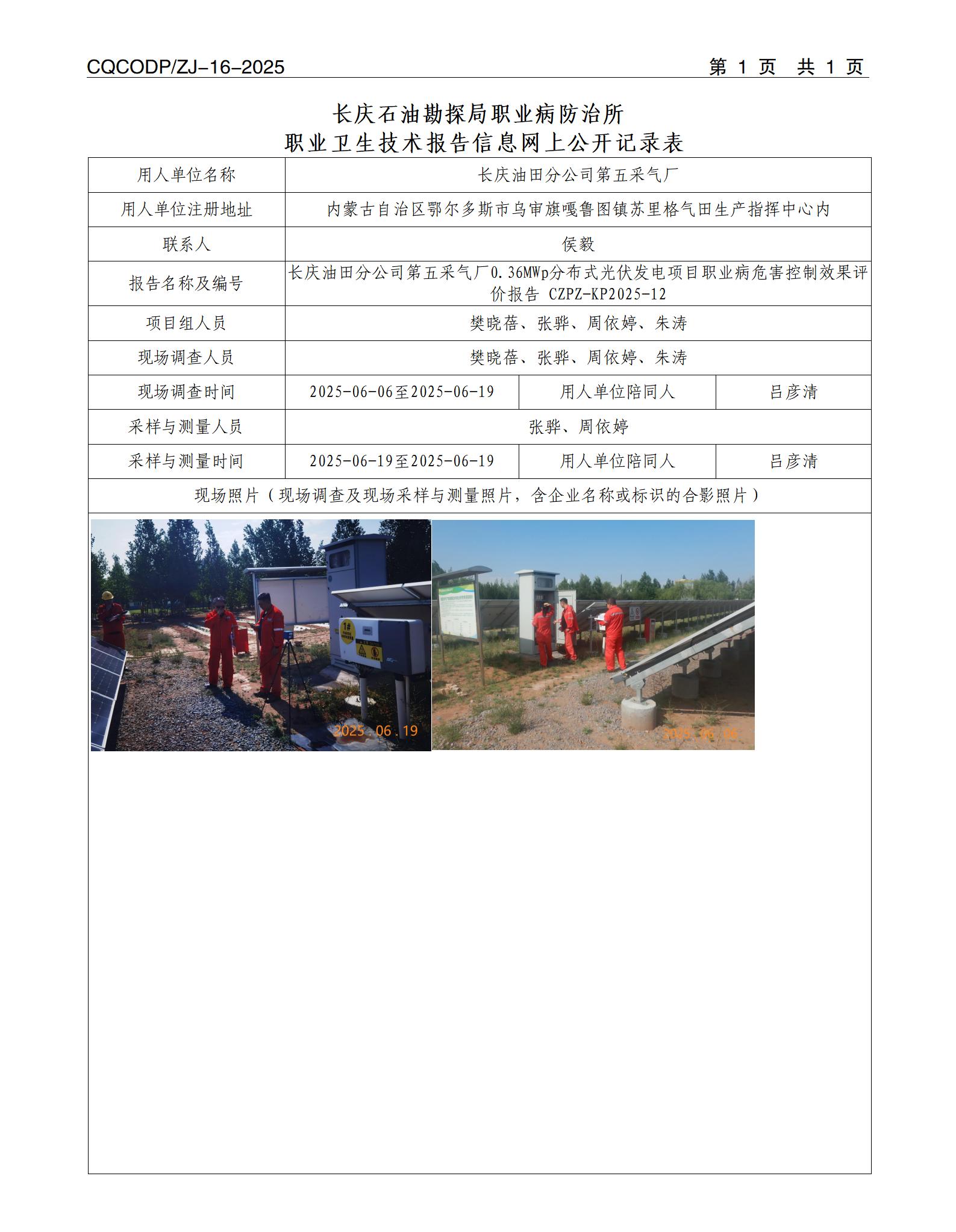 【内蒙古】长庆油田分公司第五采气厂0.25MWp分布式光伏发电项目职业病危害控制效果评价报告 CZPZ-KP2025-12