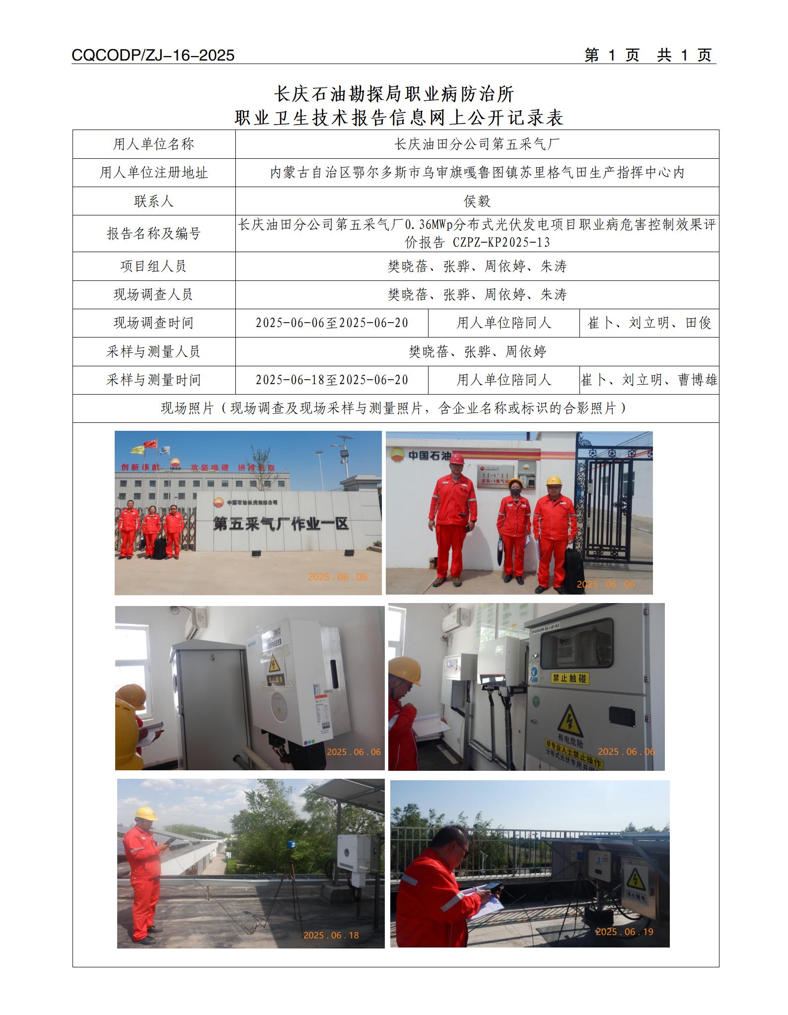 【内蒙古】长庆油田分公司第五采气厂0.36MWp分布式光伏发电项目职业病危害控制效果评价报告 CZPZ-KP2025-13