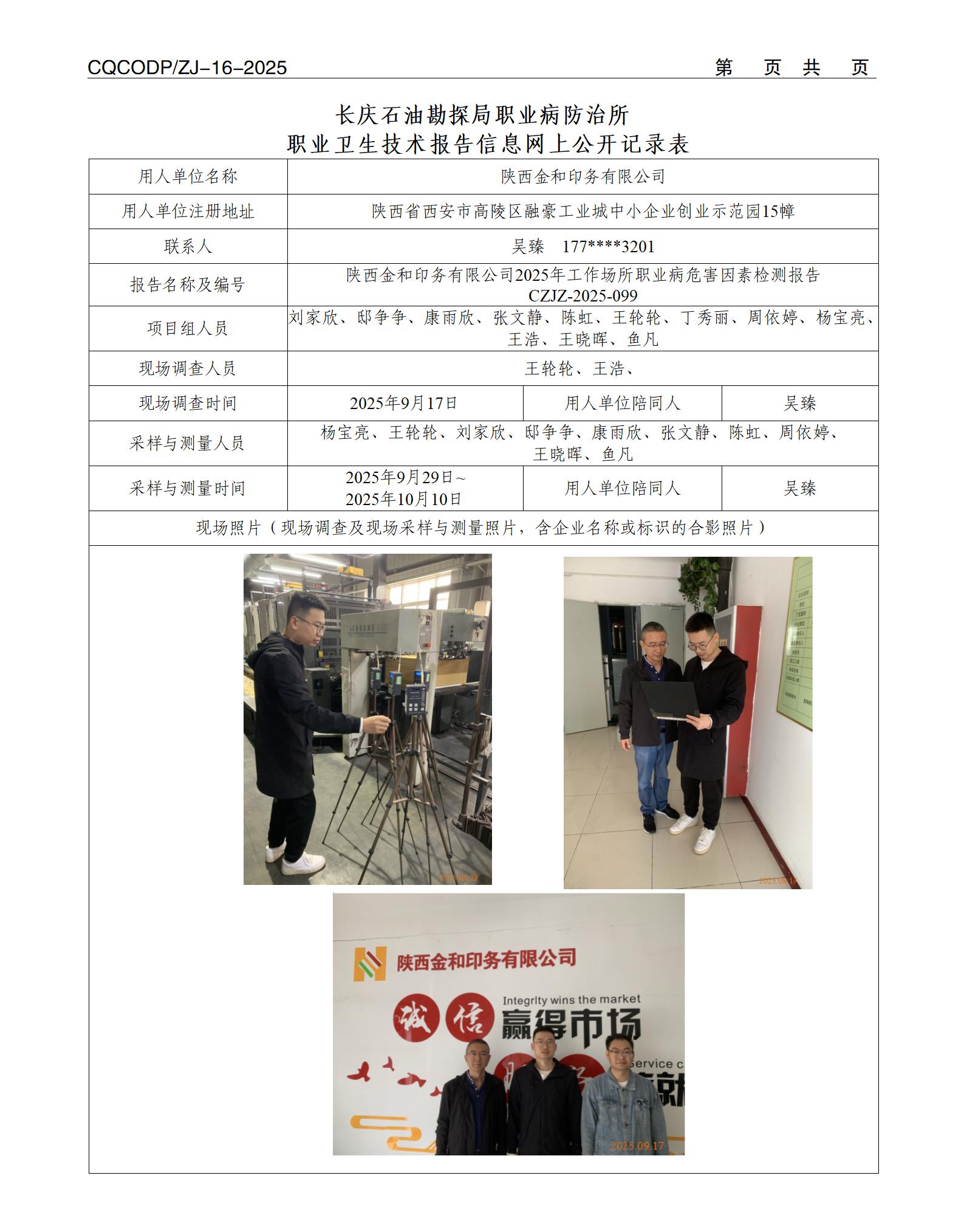 【陕西】陕西金和印务有限公司2025年工作场所职业病危害因素检测报告CZJZ-2025-099
