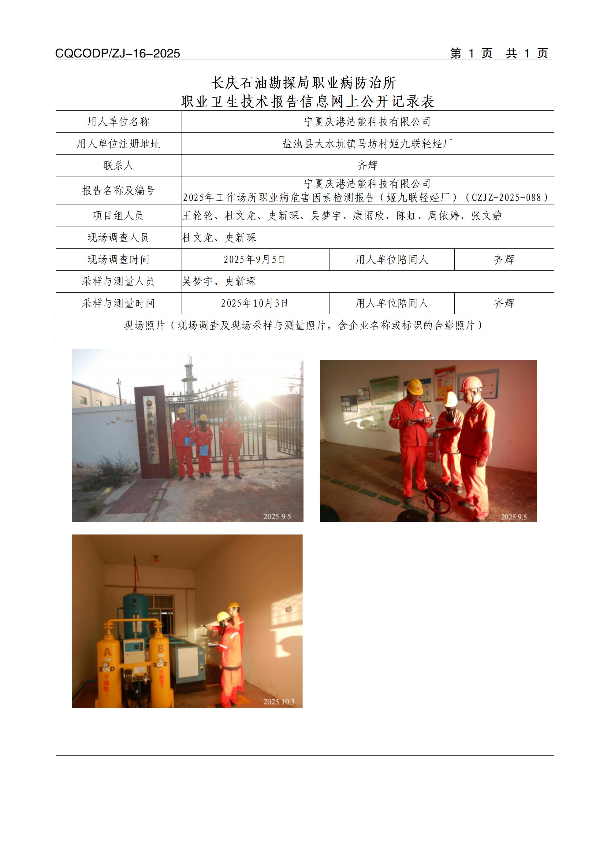 【宁夏】宁夏庆港洁能科技有限公司2025年工作场所职业病危害因素检测报告(姬九联轻烃厂)CZJZ-2025-088