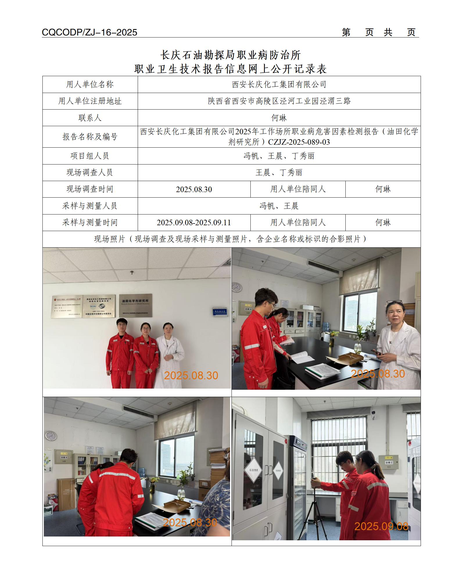 【陕西】西安长庆化工集团有限公司2025年工作场所职业病危害因素检测报告(油田化学剂研究所)CZJZ-2025-089-03
