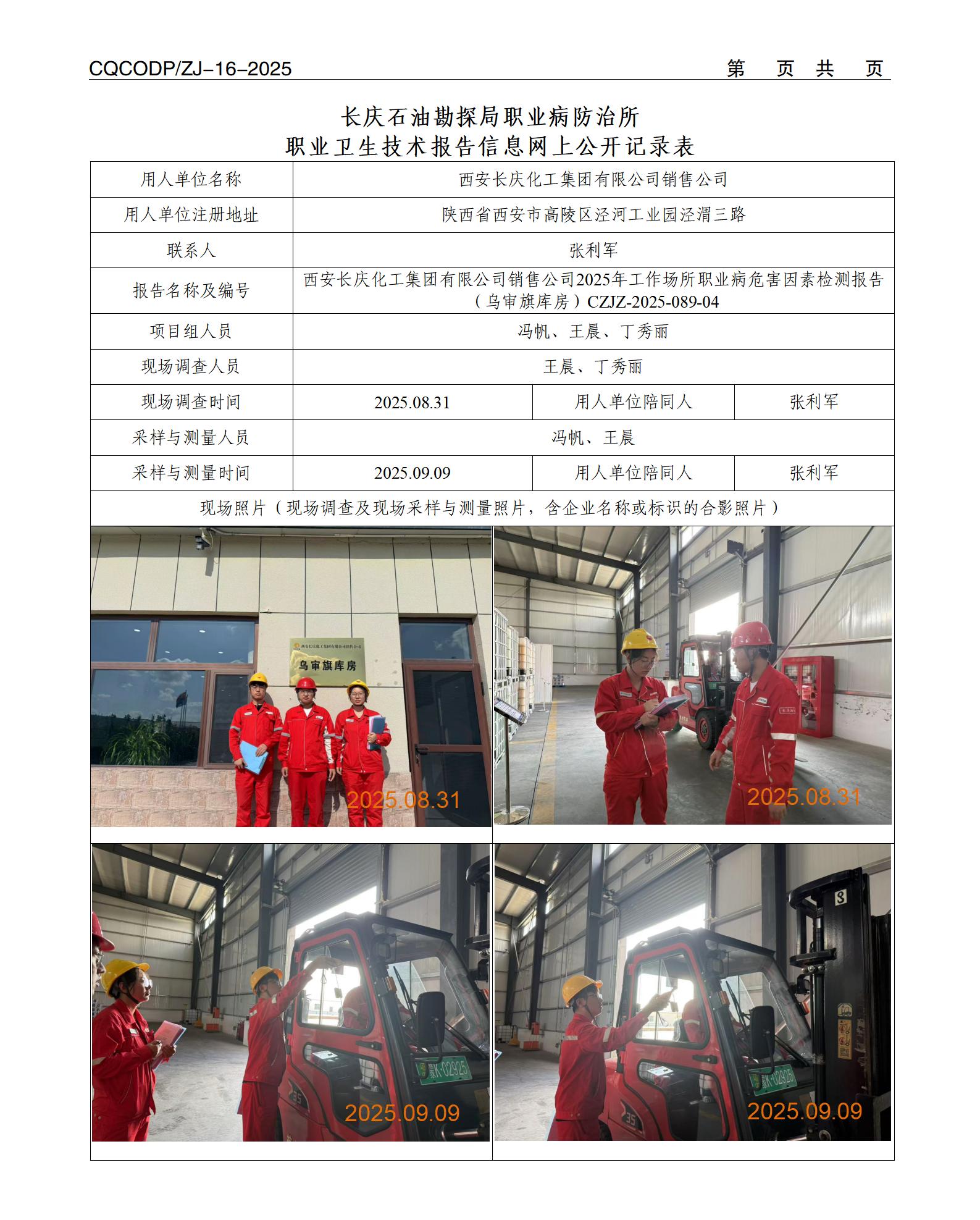 【内蒙古】西安长庆化工集团有限公司销售公司2025年工作场所职业病危害因素检测报告(乌审旗库房)CZJZ-2025-089-04