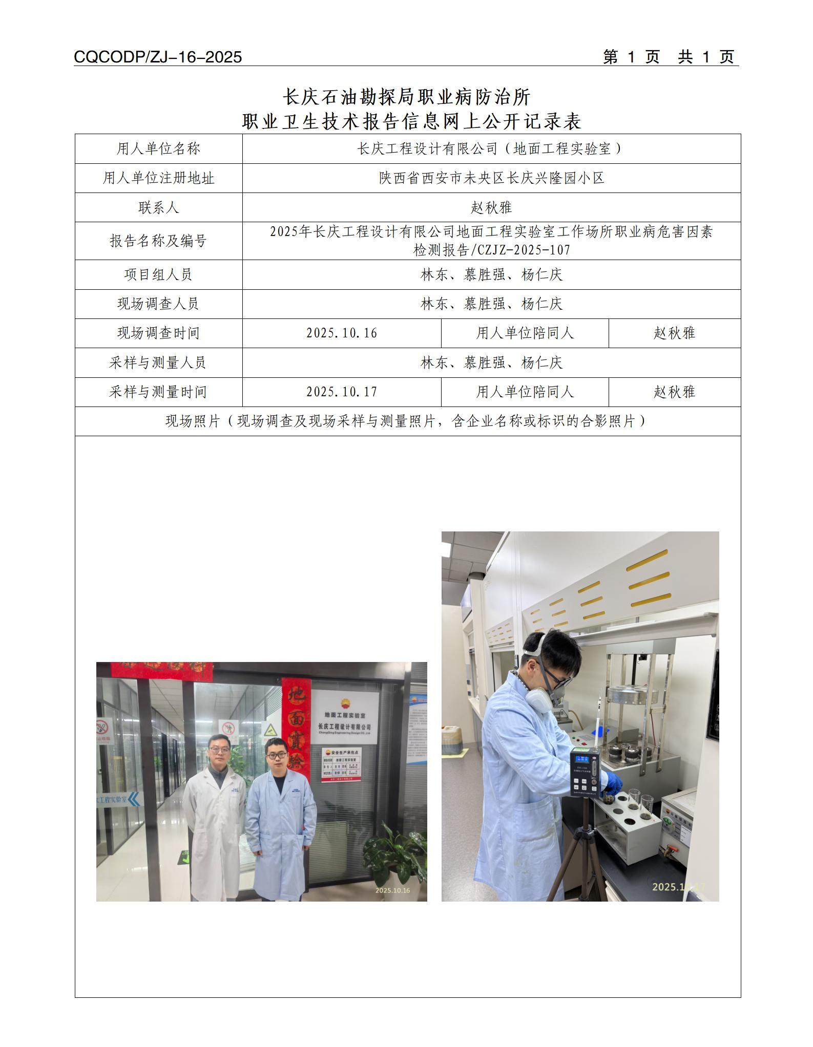 【陕西】2025年长庆工程设计有限公司地面工程实验室工作场所职业病危害因素CZJZ-2025-107