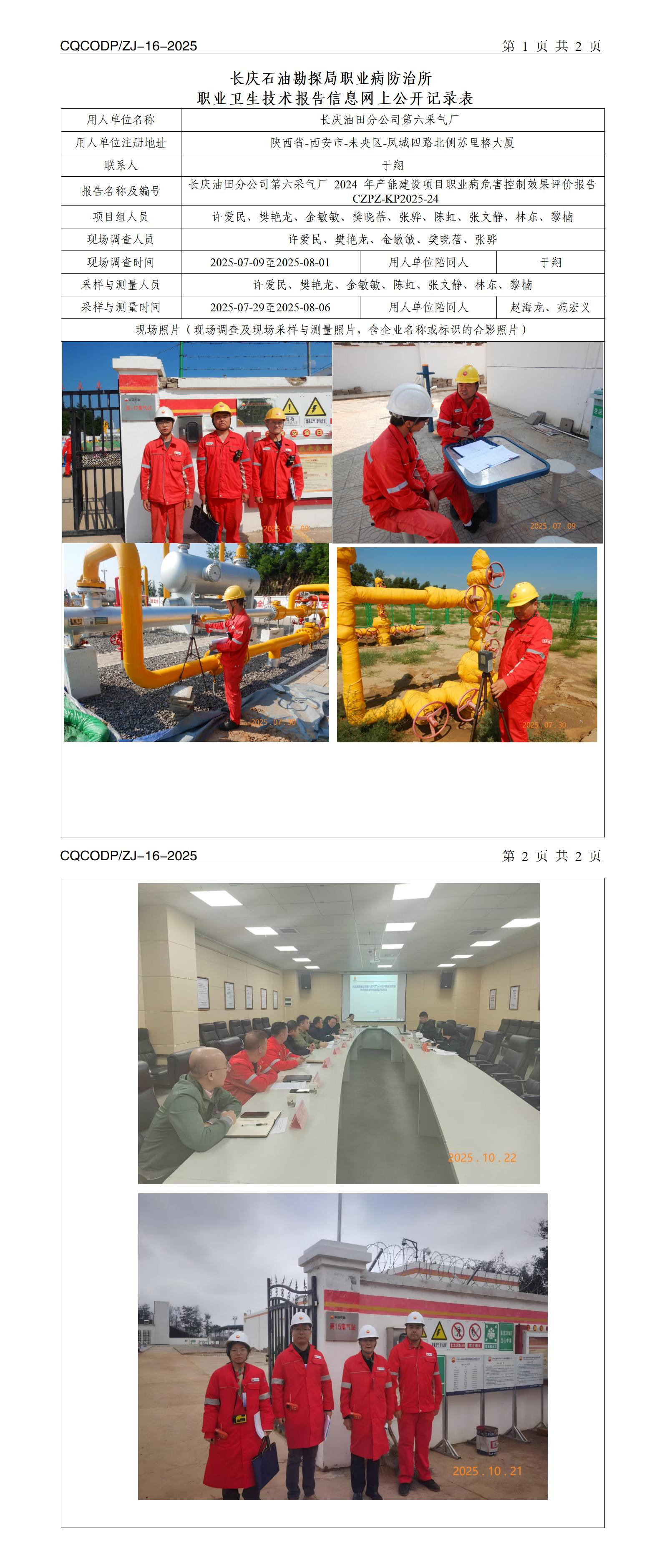 【陕西】长庆油田分公司采气六厂2024年产能建设项目职业病危害控制效果评价报告 CZPZ-KP2025-24