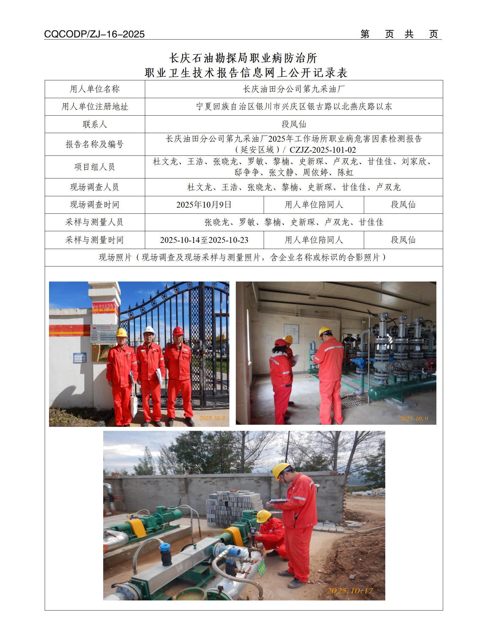 【陕西】长庆油田分公司第九采油厂2025年工作场所职业病危害因素检测报告(延安区域)CZJZ-2025-101-02