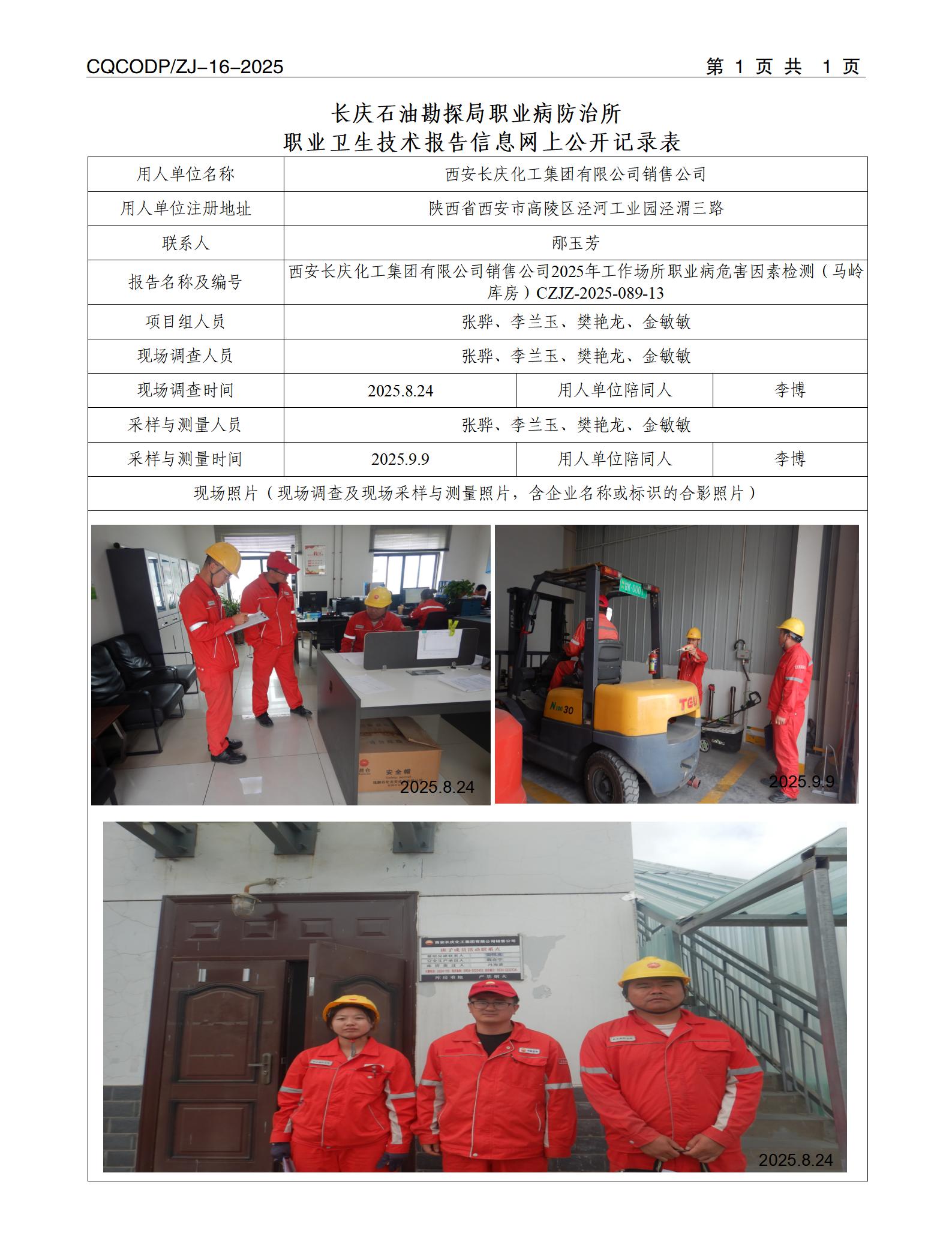 【甘肃】西安长庆化工集团有限公司销售公司2025年工作场所职业病危害因素检测报告(马岭库房)CZJZ-2025-089-13