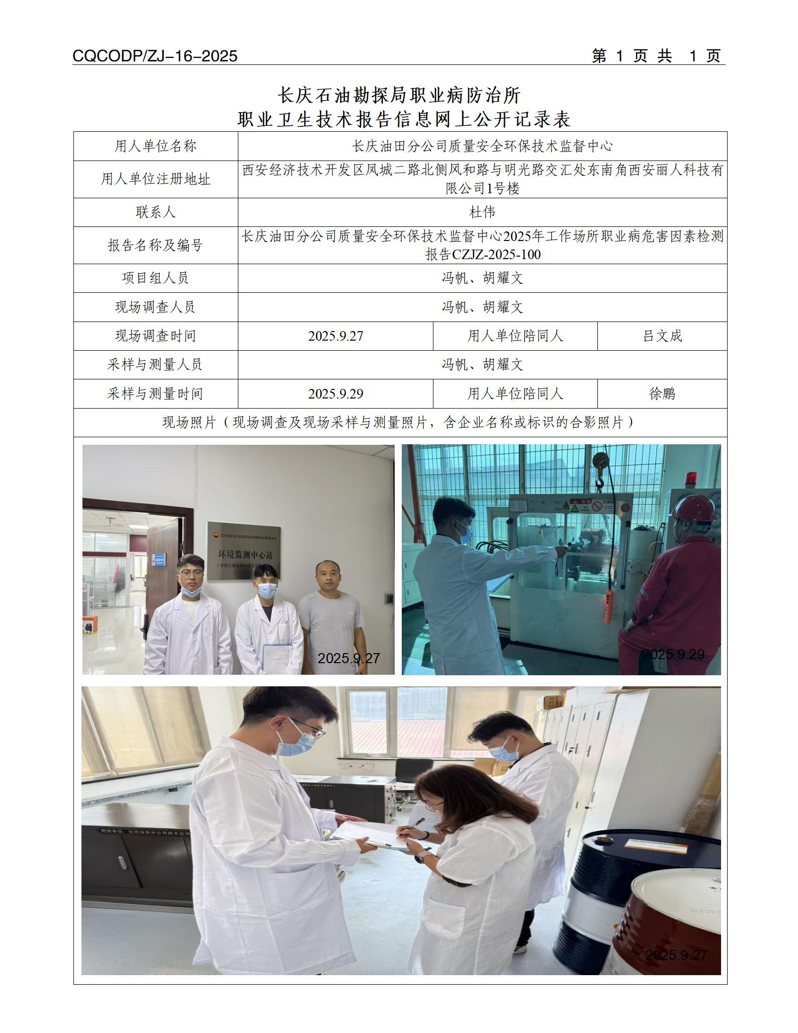 【陕西】长庆油田分公司质量安全环保技术监督中心2025年工作场所职业病危害因素检测报告CZJZ-2025-100