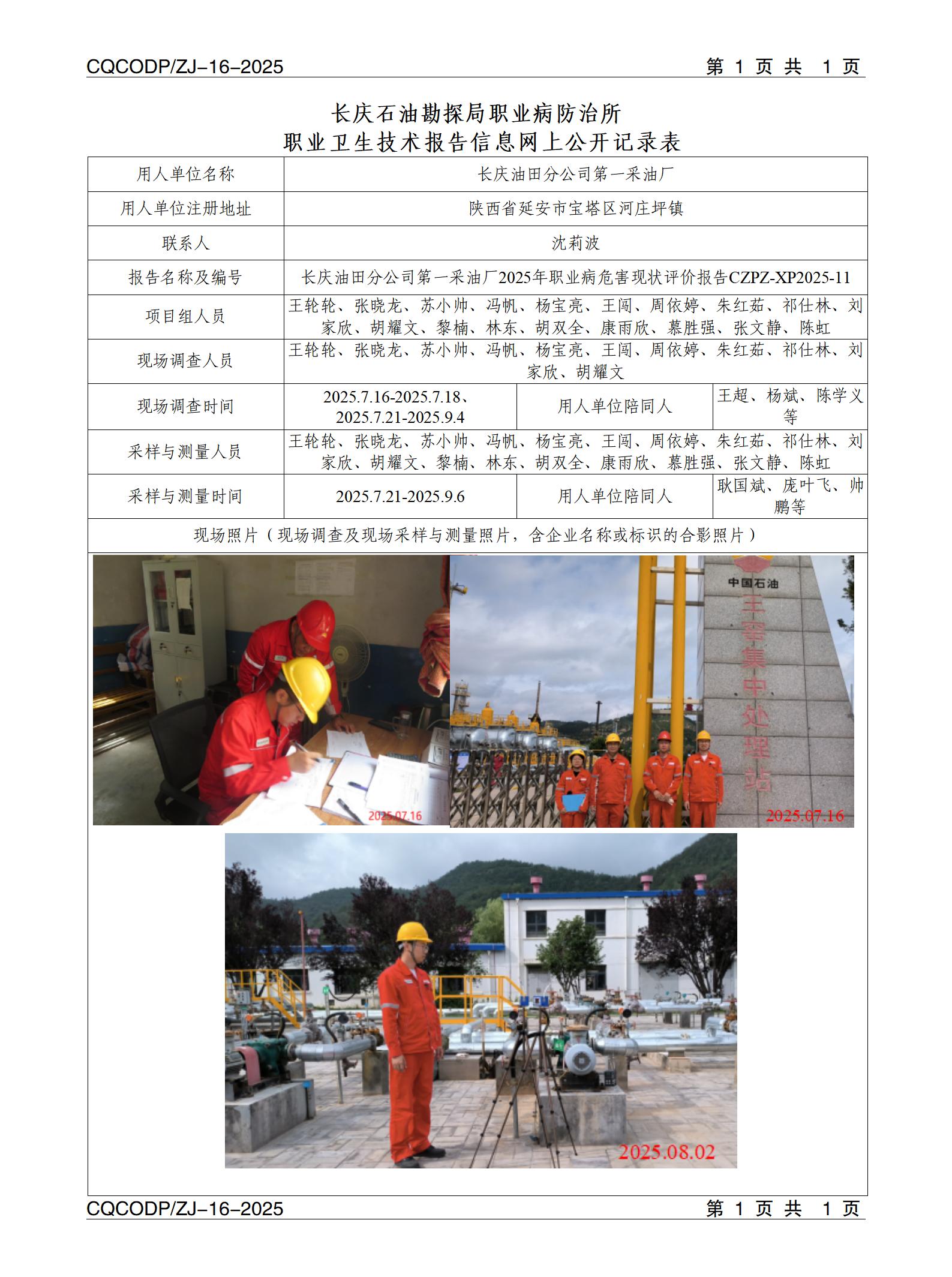 【陕西省】长庆油田分公司第一采油厂2025年职业病危害现状评价报告CZPZ-XP2025-11