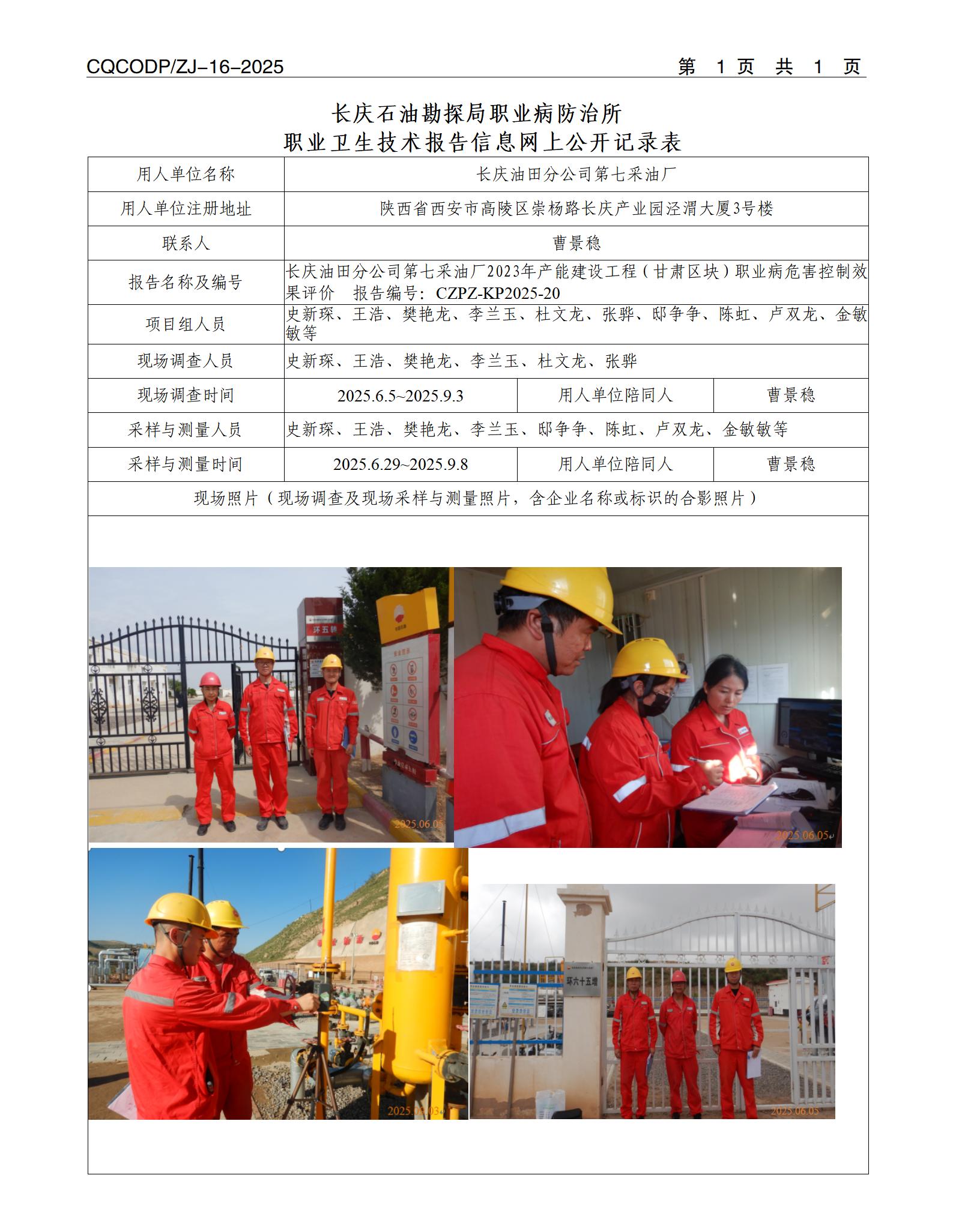 【甘肃】长庆油田分公司第七采油厂2023年产能建设工程(甘肃区块)职业病危害控制效果评价CZPZ-KP2025-20