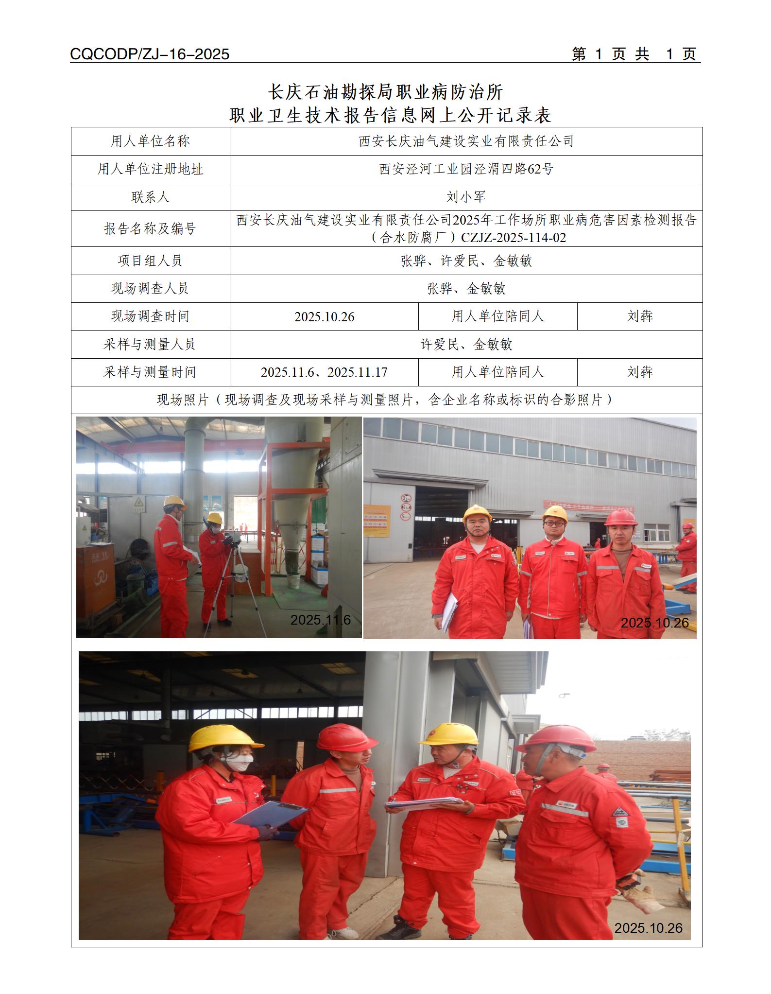 【甘肃】西安长庆油气建设实业有限责任公司2025年工作场所职业病危害因素检测报告(合水防腐厂)CZJZ-2025-114-02