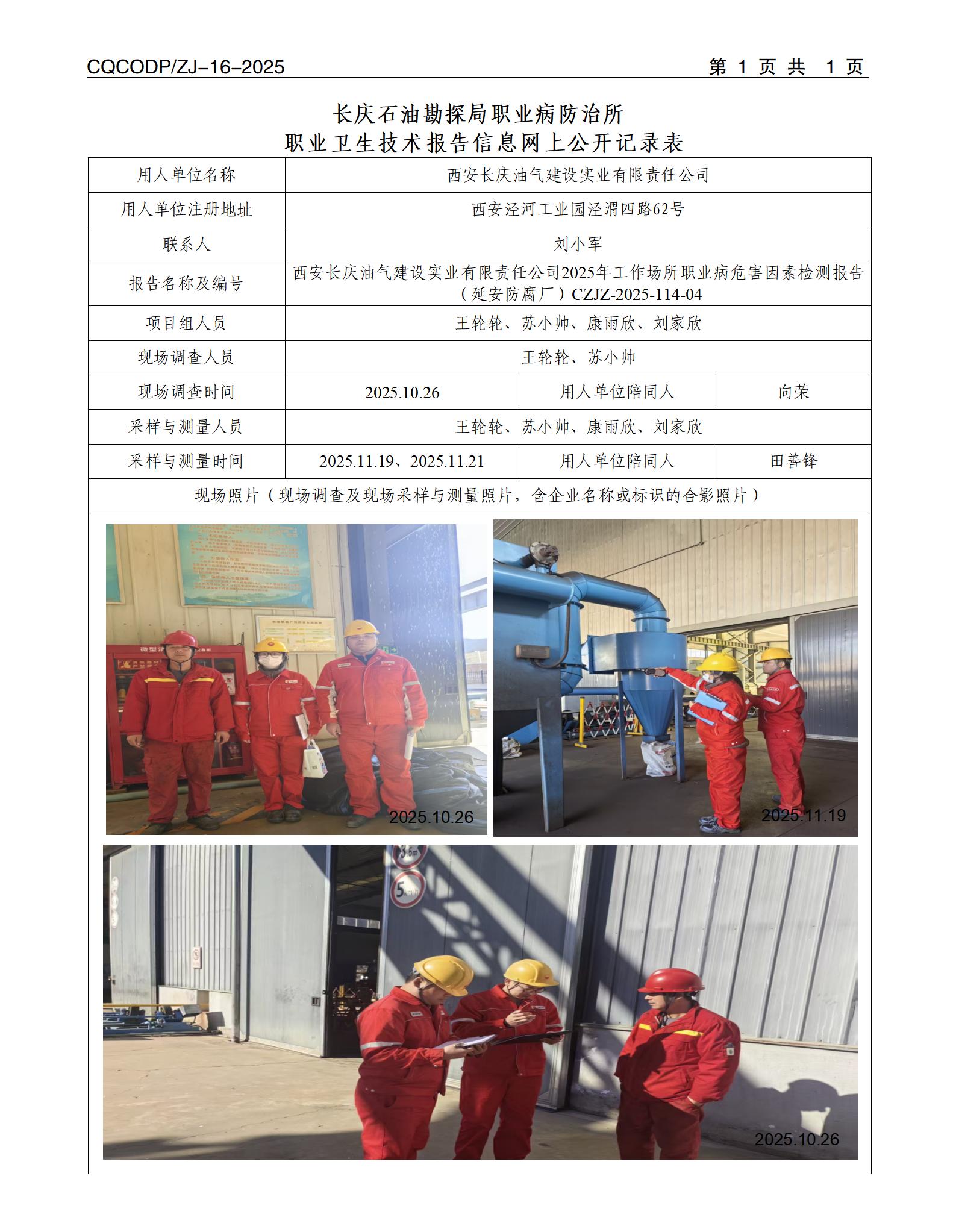 【陕西】西安长庆油气建设实业有限责任公司2025年工作场所职业病危害因素检测报告(延安防腐厂)CZJZ-2025-114-04