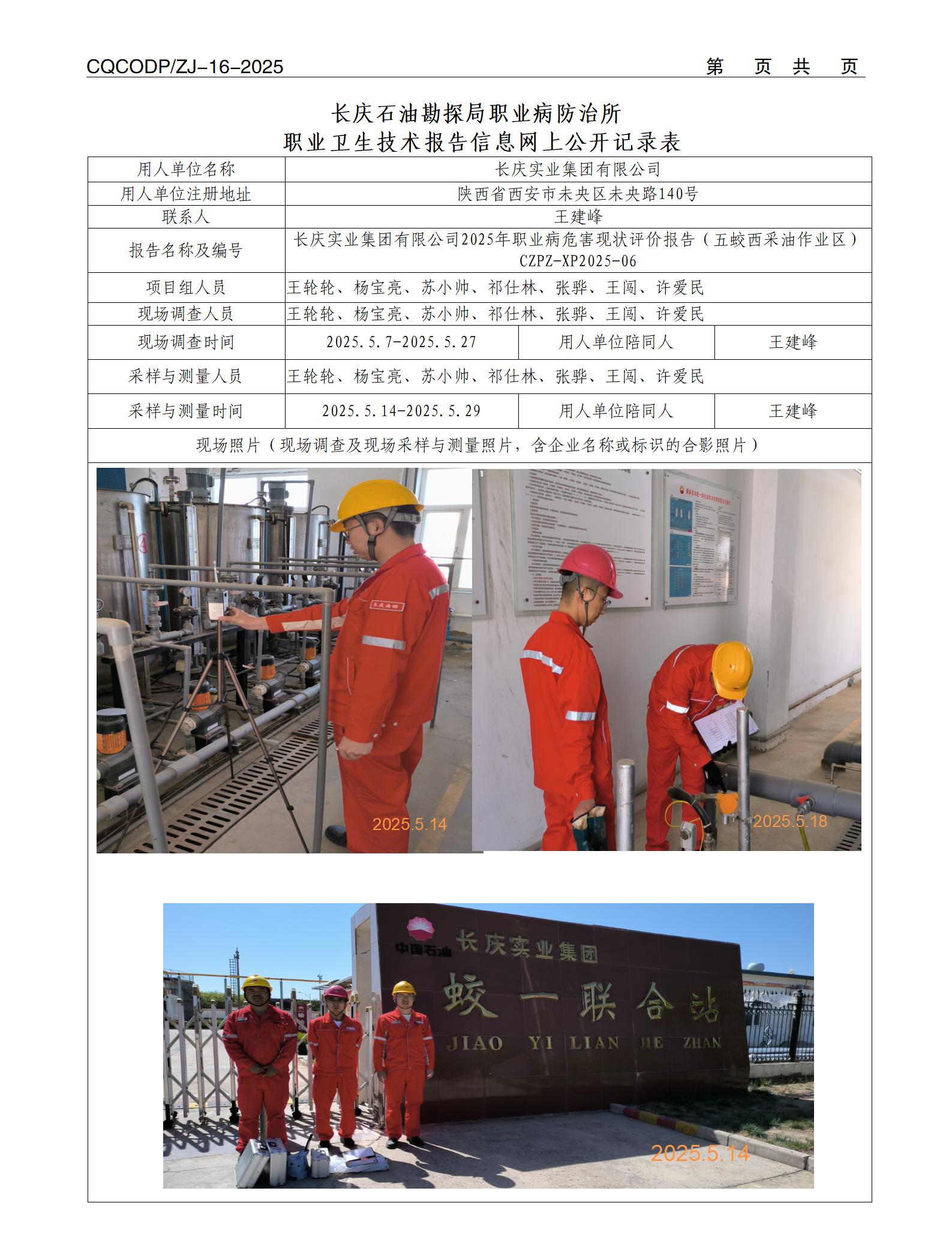 【甘肃】长庆实业集团有限公司2025年职业病危害现状评价报告CZPZ-XP2025-06