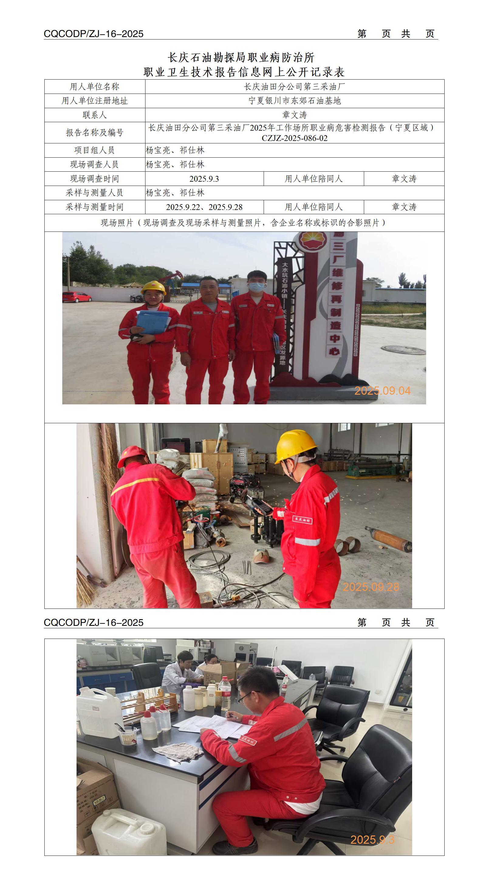 【宁夏】长庆油田分公司第三采油厂2025年工作场所职业病危害因素检测报告(宁夏区域)CZJZ-2025-086-03