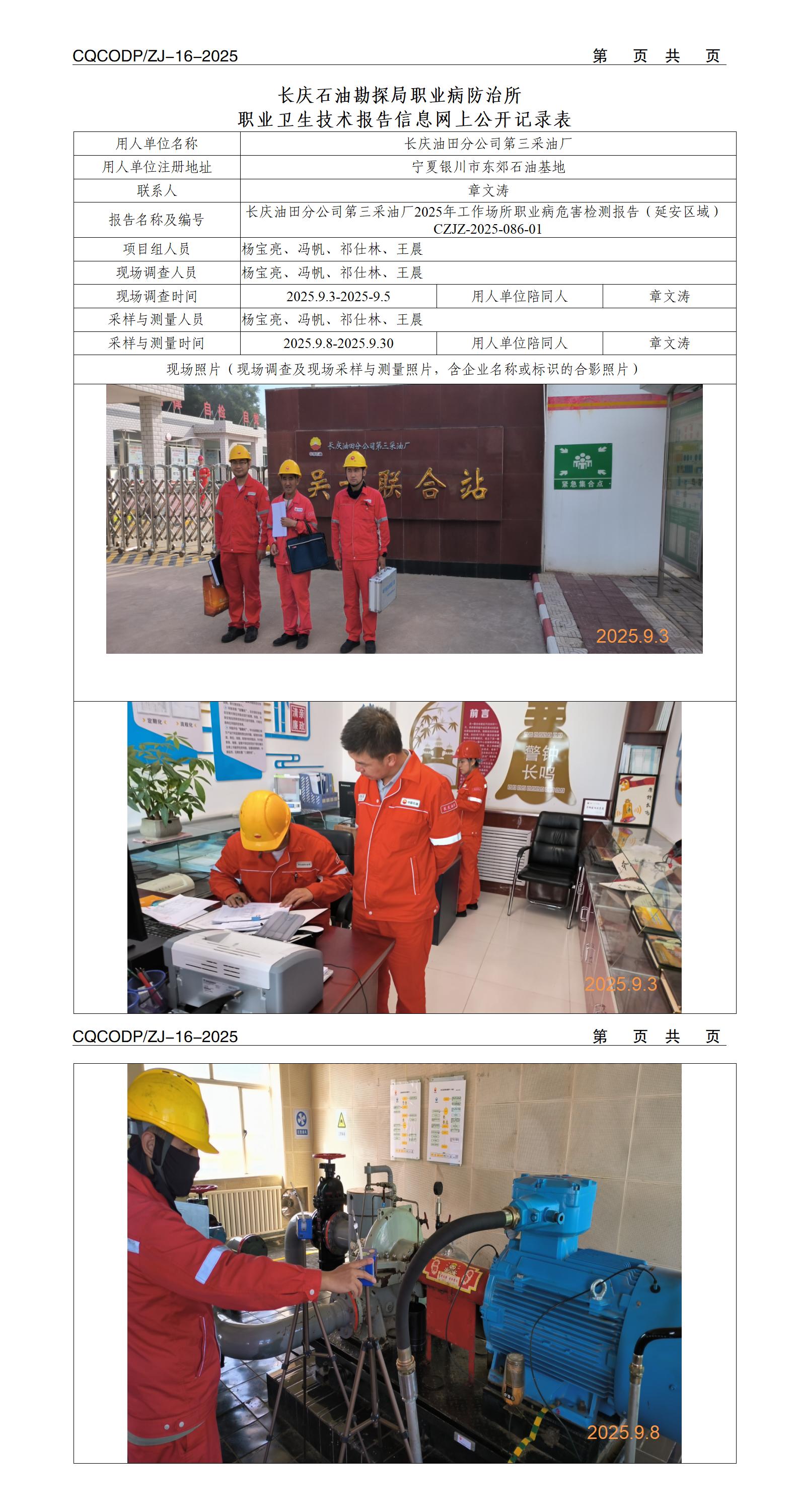 【陕西】长庆油田分公司第三采油厂2025年工作场所职业病危害因素检测报告(延安区域)CZJZ-2025-086-01