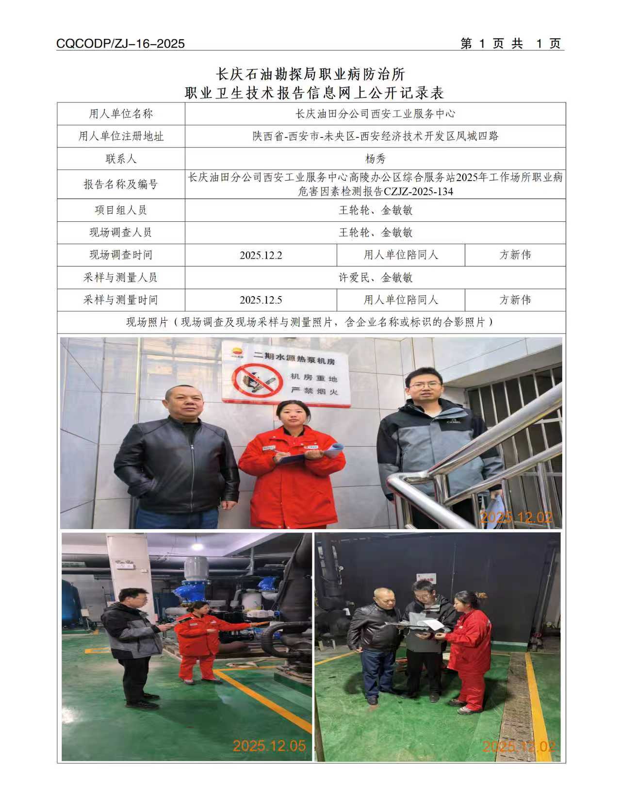 【陕西】长庆油田分公司西安工业服务中心高陵办公区综合服务站2025年工作场所职业病危害因素检测报告CZJZ-2025-134