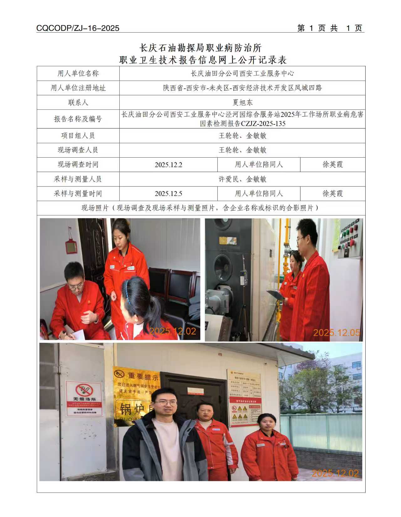 【陕西】长庆油田分公司西安工业服务中心泾河园综合服务站2025年工作场所职业病危害因素检测报告CZJZ-2025-135