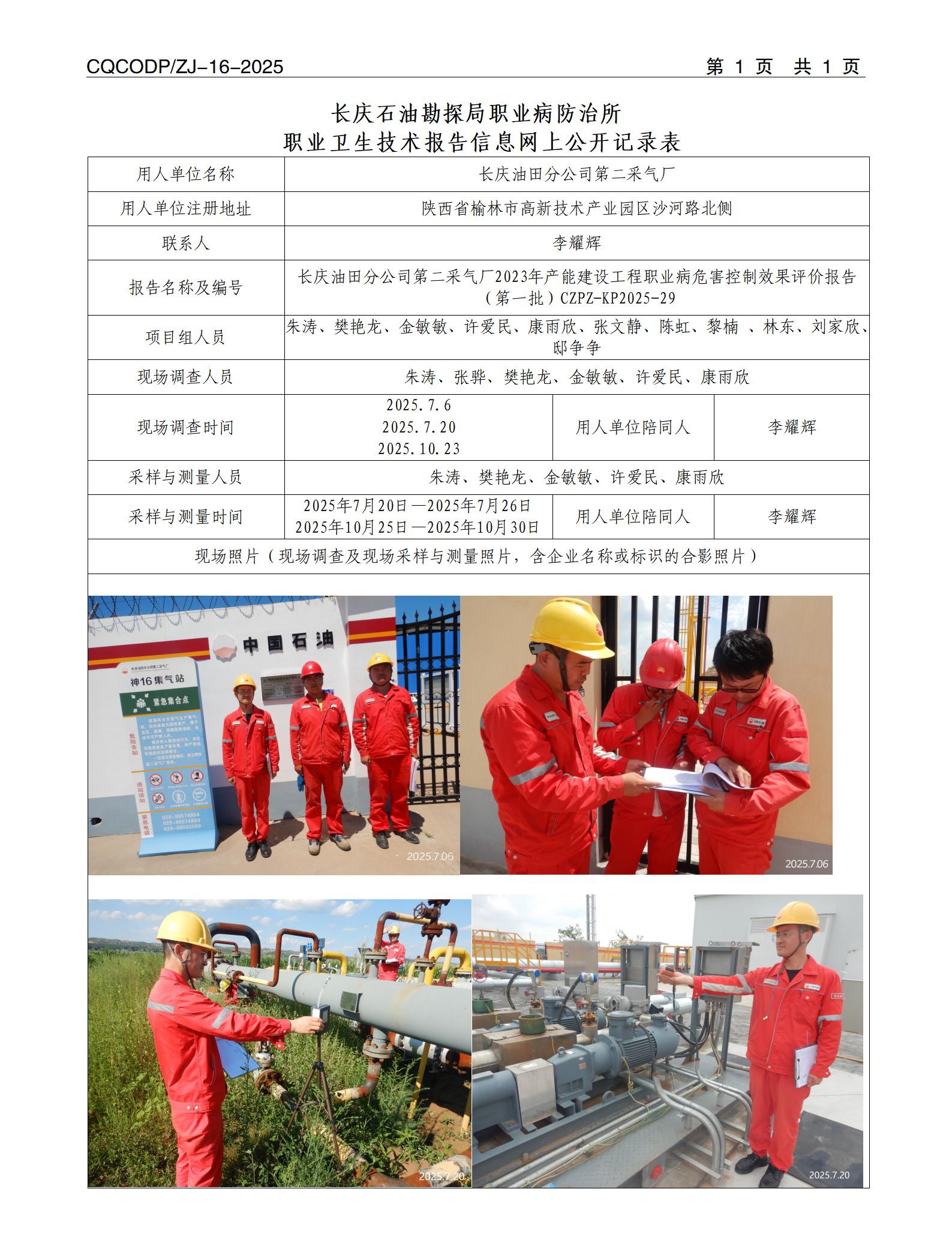 【陕西】长庆油田分公司第二采气厂2023年产能建设工程职业病危害控制效果评价报告(第一批)CZPZ-KP2025-29