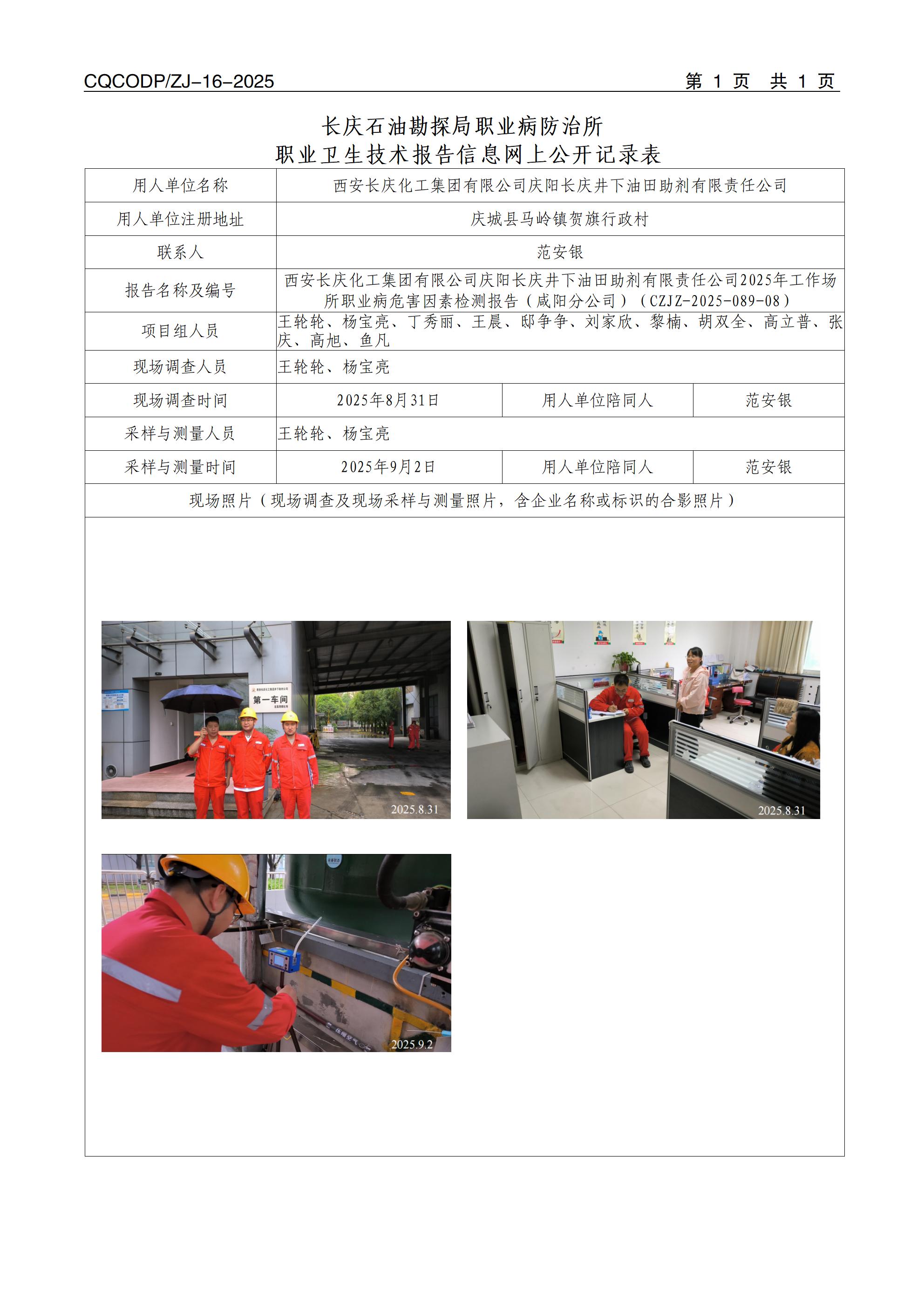 【甘肃】西安长庆化工集团有限公司庆阳长庆井下油田助剂有限责任公司2025年工作场所职业病危害因素检测报告(咸阳分公司)CZJZ-2025-089-08