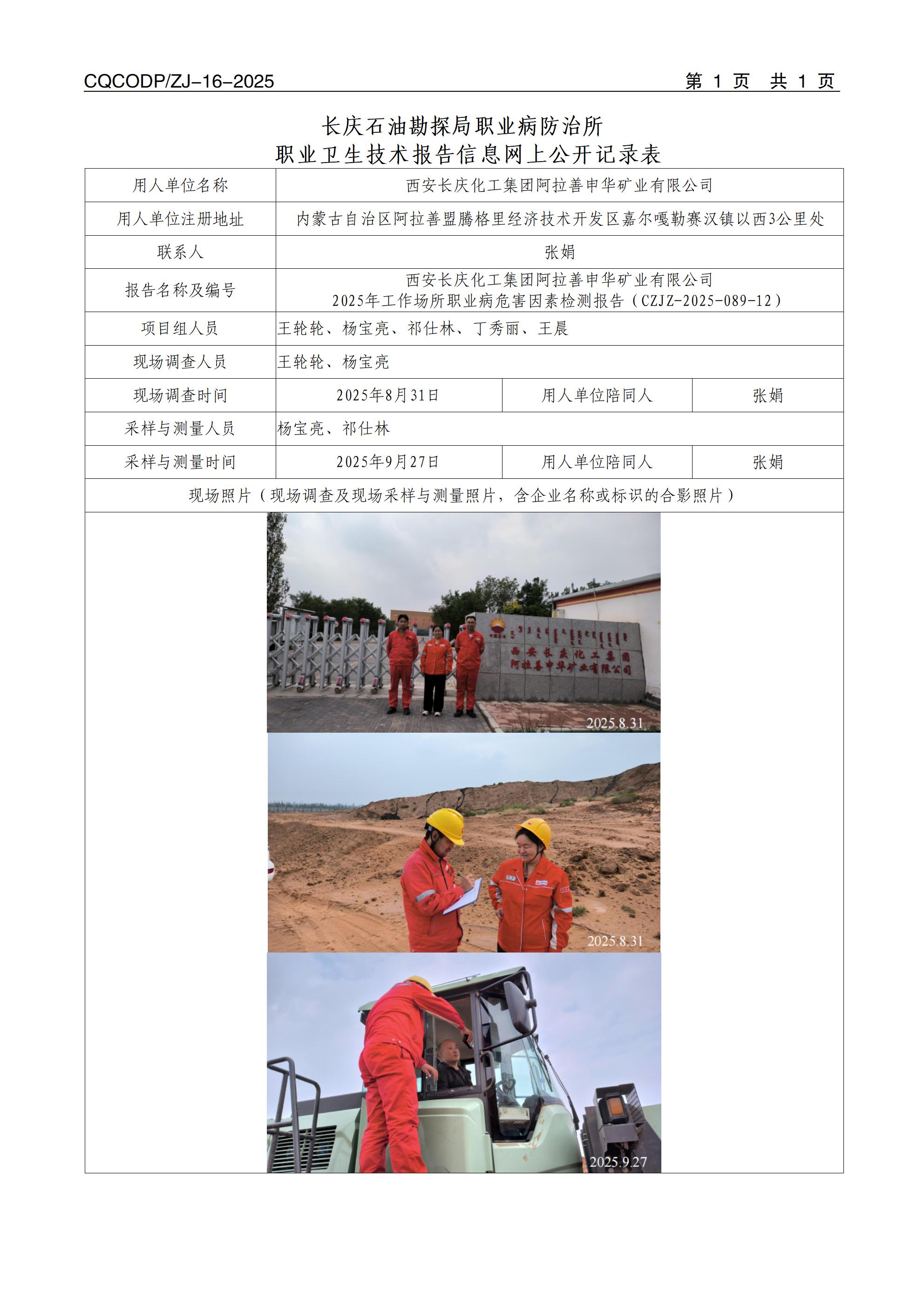 【内蒙古】西安长庆化工集团阿拉善申华矿业有限公司2025年工作场所职业病危害因素检测报告CZJZ-2025-089-12