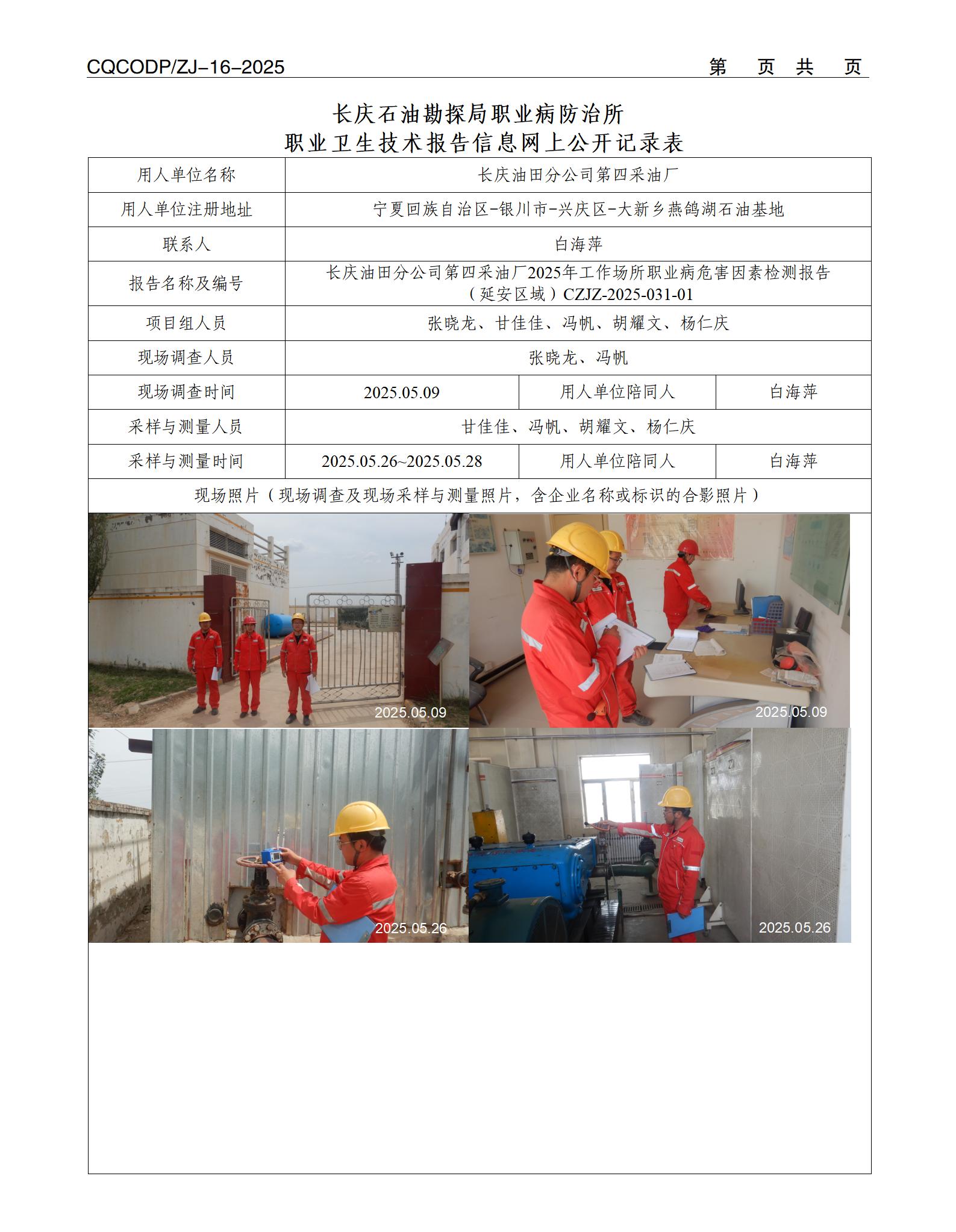 【陕西】长庆油田分公司第四采油厂2025年工作场所职业病危害因素检测报告(延安区域)CZJZ-2025-031-01