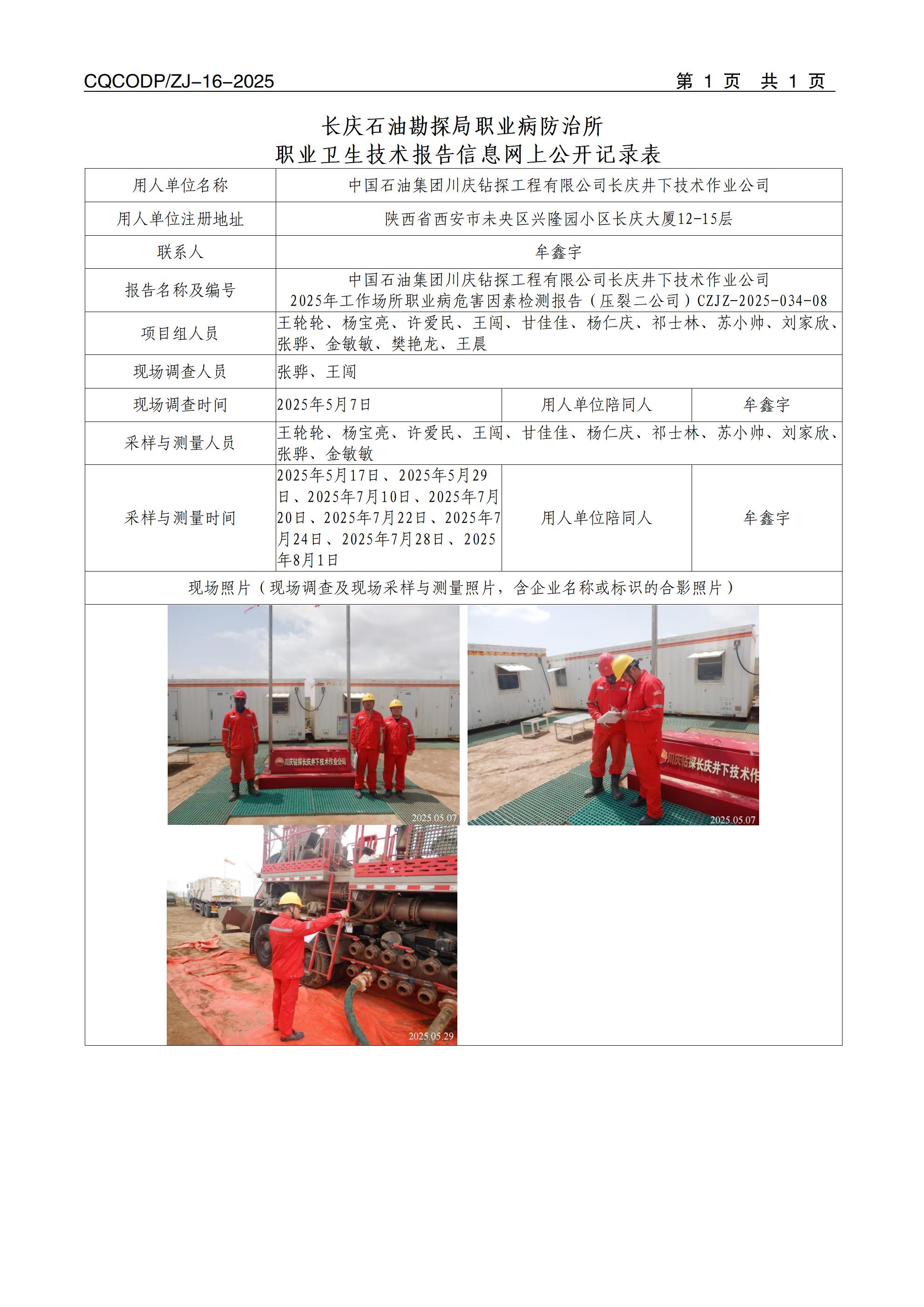 【陕西+甘肃+宁夏+内蒙古】中国石油集团川庆钻探工程有限公司长庆井下技术作业公司2025年工作场所职业病危害因素检测报告(压裂二公司)CZJZ-2025-034-08