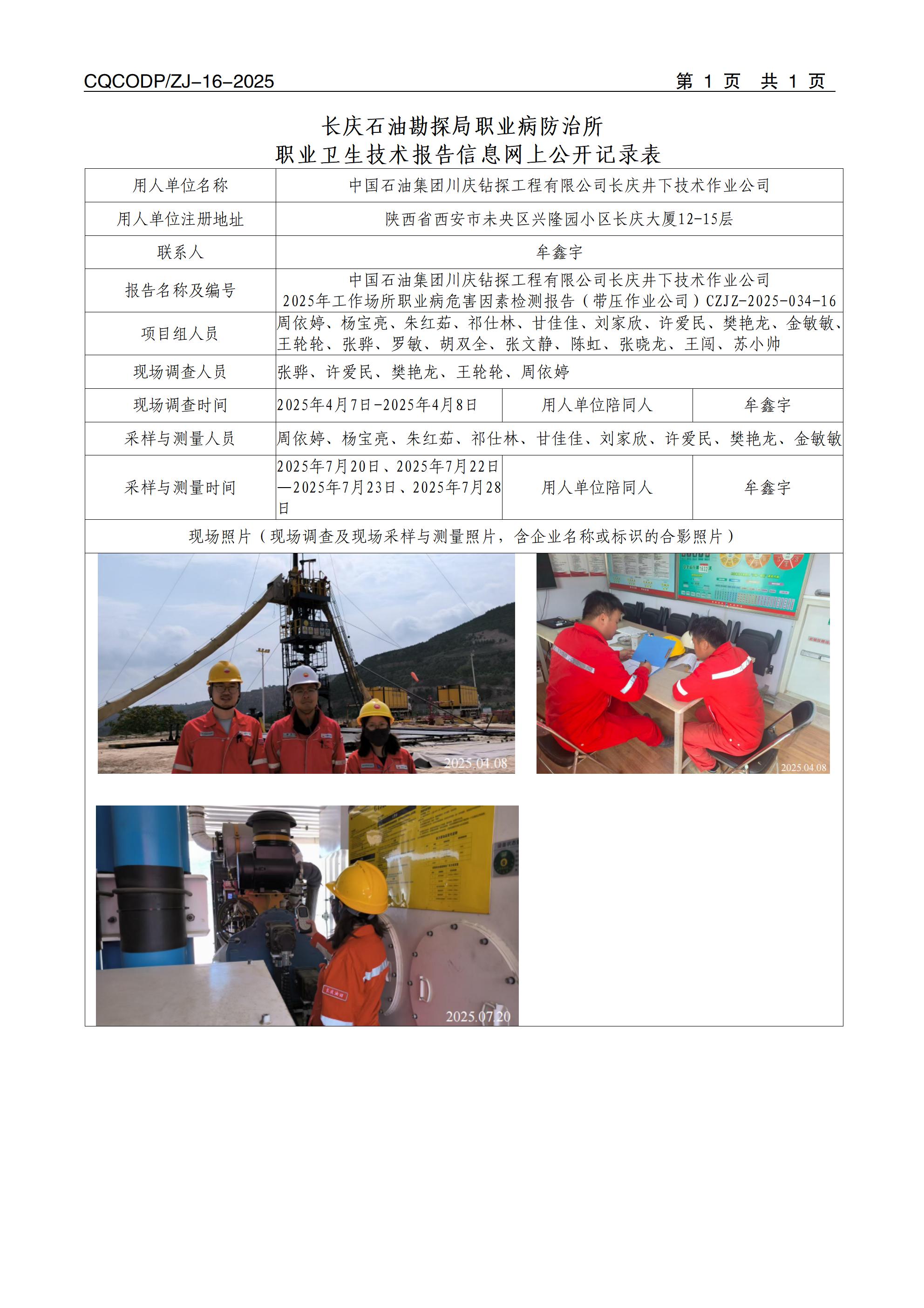 【陕西+甘肃+内蒙古】中国石油集团川庆钻探工程有限公司长庆井下技术作业公司2025年工作场所职业病危害因素检测报告(带压作业公司)CZJZ-2025-034-16