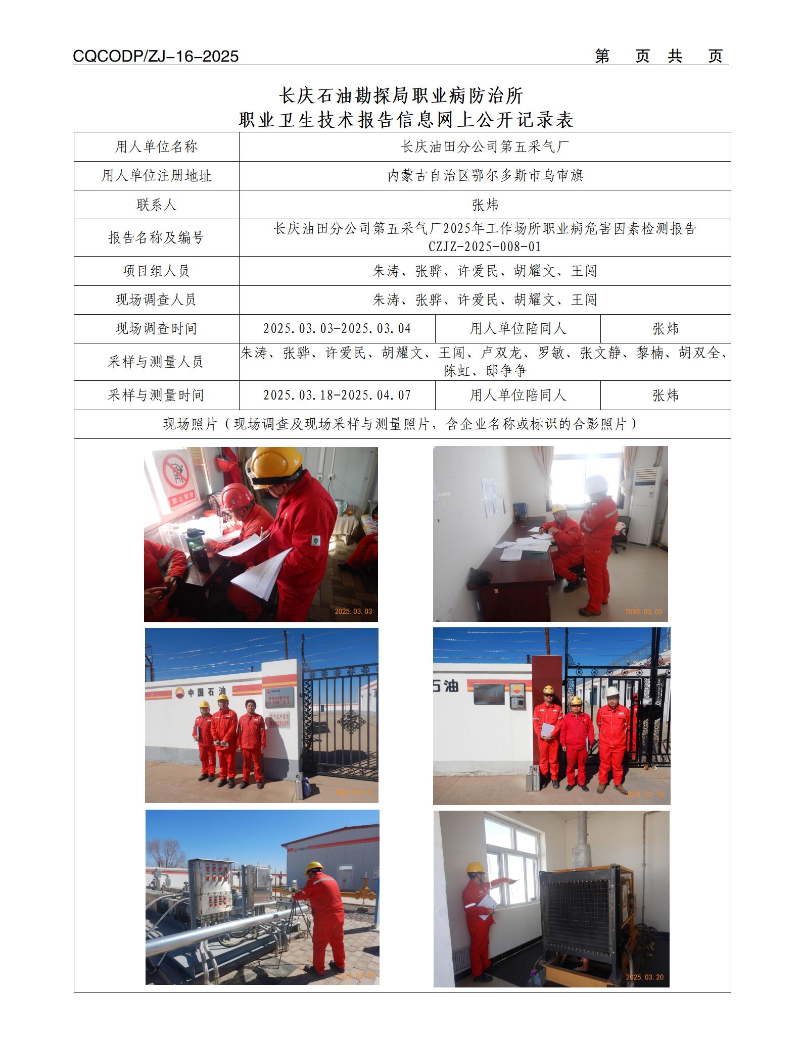 【内蒙古】长庆油田分公司第五采气厂2025年工作场所职业病危害因素检测报告CZJZ-2025-008-01